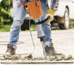 Equipamentos para demolição e preparação de terreno, como marteletes demolidores e trituradores de entulho.